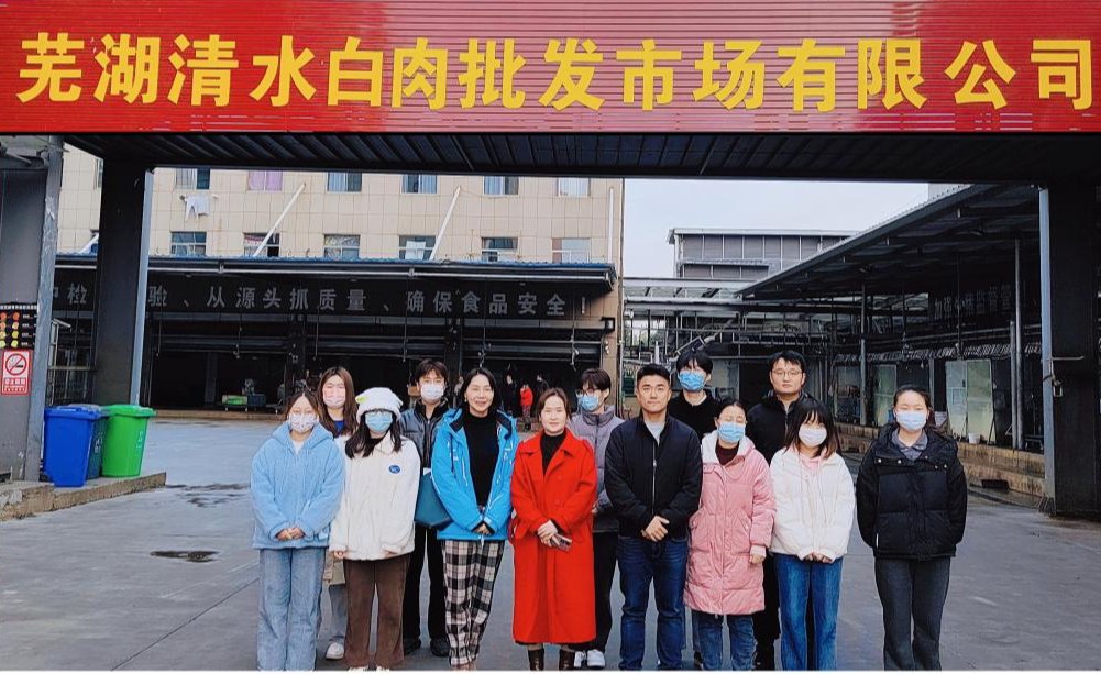 为适应就业市场要求,加强校企协同育人及产学研合作,提高人才培养质量,进一步深化学院实践教学改革,食品与生物工程学院积极推动院外产学研基地建设,充分利用社会资源开放办学。12月5日,食品与生物工程学院党总支副书记陶玲凤、牧医教研室谢诗慧老师和辅导员吴月霞、鲁润等带领学生代表6人前往芜湖清水白肉批发市场有限公司调研交流,并举行“产学研合作基地”暨“实习就业基地”签约授牌仪式。
