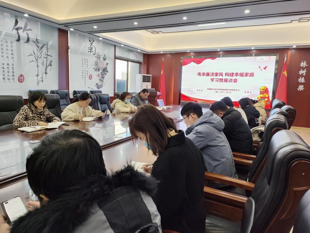 园林园艺学院党总支倡导广大教职工大力弘扬向上向善的家庭美德,以家风带政风、以家训促廉洁、把家风建设的成效转化为党尽责、为民造福的责任担当,用实际行动推动学院各项工作的发展,为学校廉洁校园建设和双高建设保驾护航。(文、图/章素华 郭丽 审/朱志国)