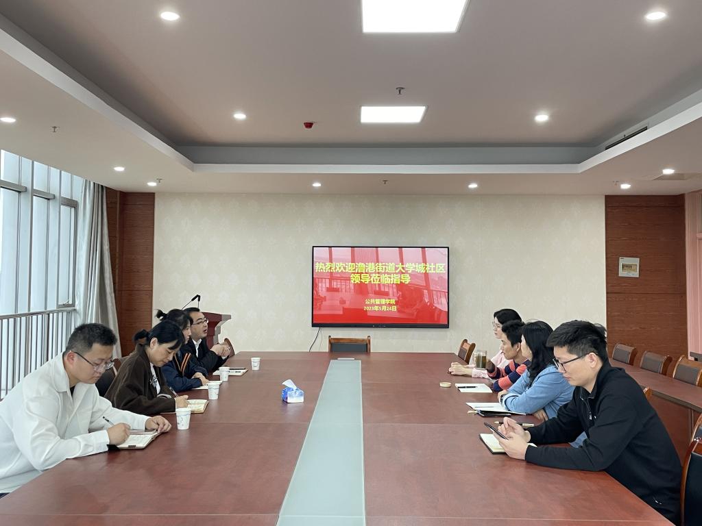 近日,芜湖澛港街道大学城社区党总支书记汪艳、团支部书记邓寅联合辖区龙湖物业公司、中辰物业公司负责人一行来到公共管理学院开展校企合作调研交流,公共管理学院党总支书记徐枫、副书记王永琦、辅导员黄文汇、张婉春参加了会议。