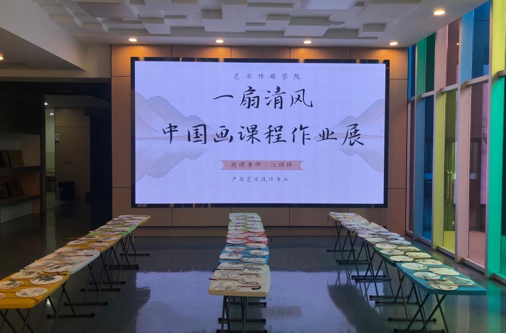 5月25日上午,艺术传媒学院在明德楼一楼举办题为“一扇清风”的课程思政作业展。