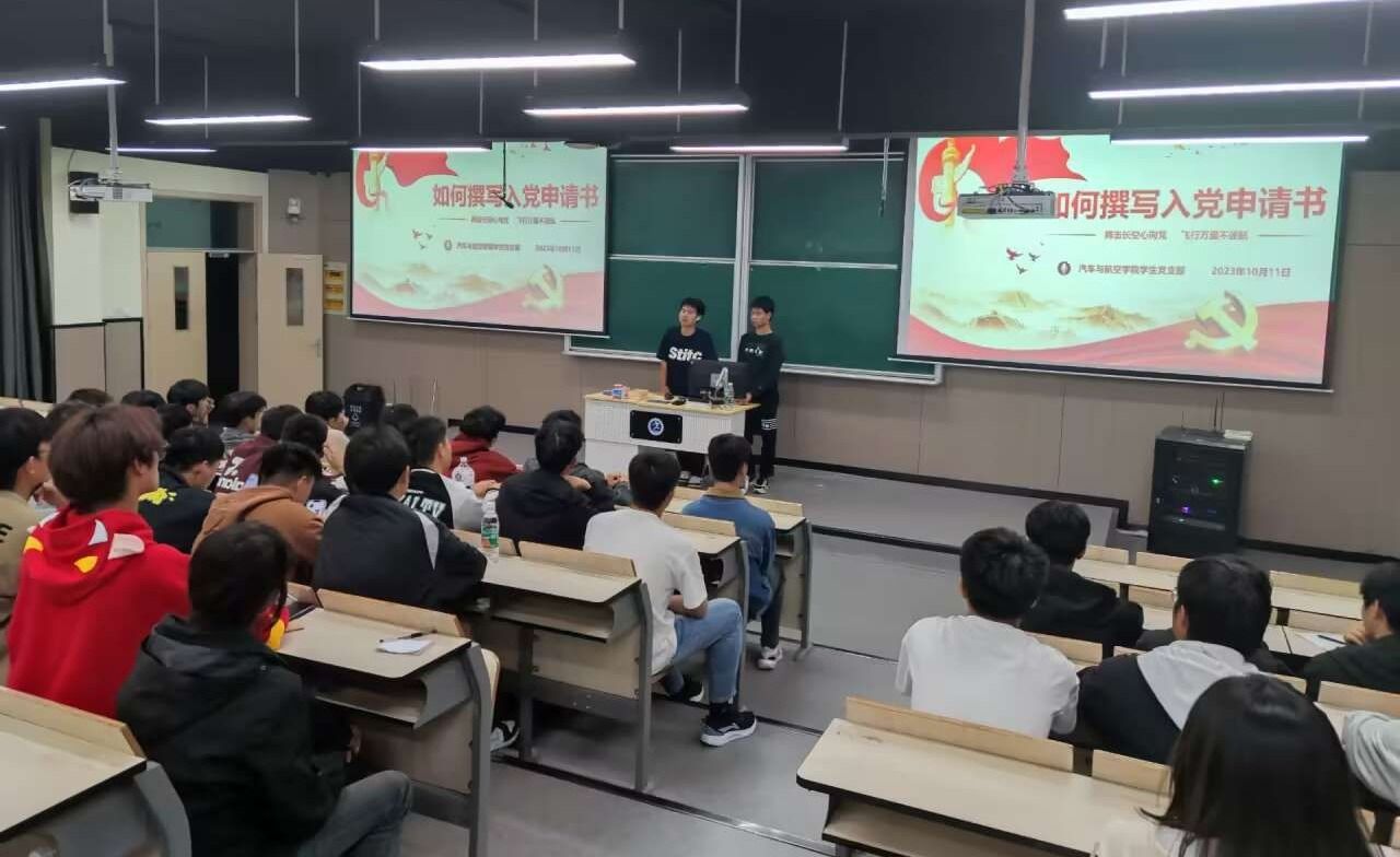 为了扎实持续做好2023级新生入党启蒙教育,回应新生关切问题,10月13日晚上,汽车与航空学院组织开展“你的初心如何书写-如何撰写入党申请书”主题讲座,2023级新生参加了此次活动。