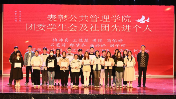 为进一步加强学生干部队伍建设,充分发挥榜样育人作用。11月14日晚,公共管理学院2023年表彰大会暨第十七届团学代表大会在南校区大礼堂召开。学院党总支副书记王永琦、组织员兼学工科科长毕厚煌、团委书记张婉春、辅导员胡娟娟出席参加本次会议。