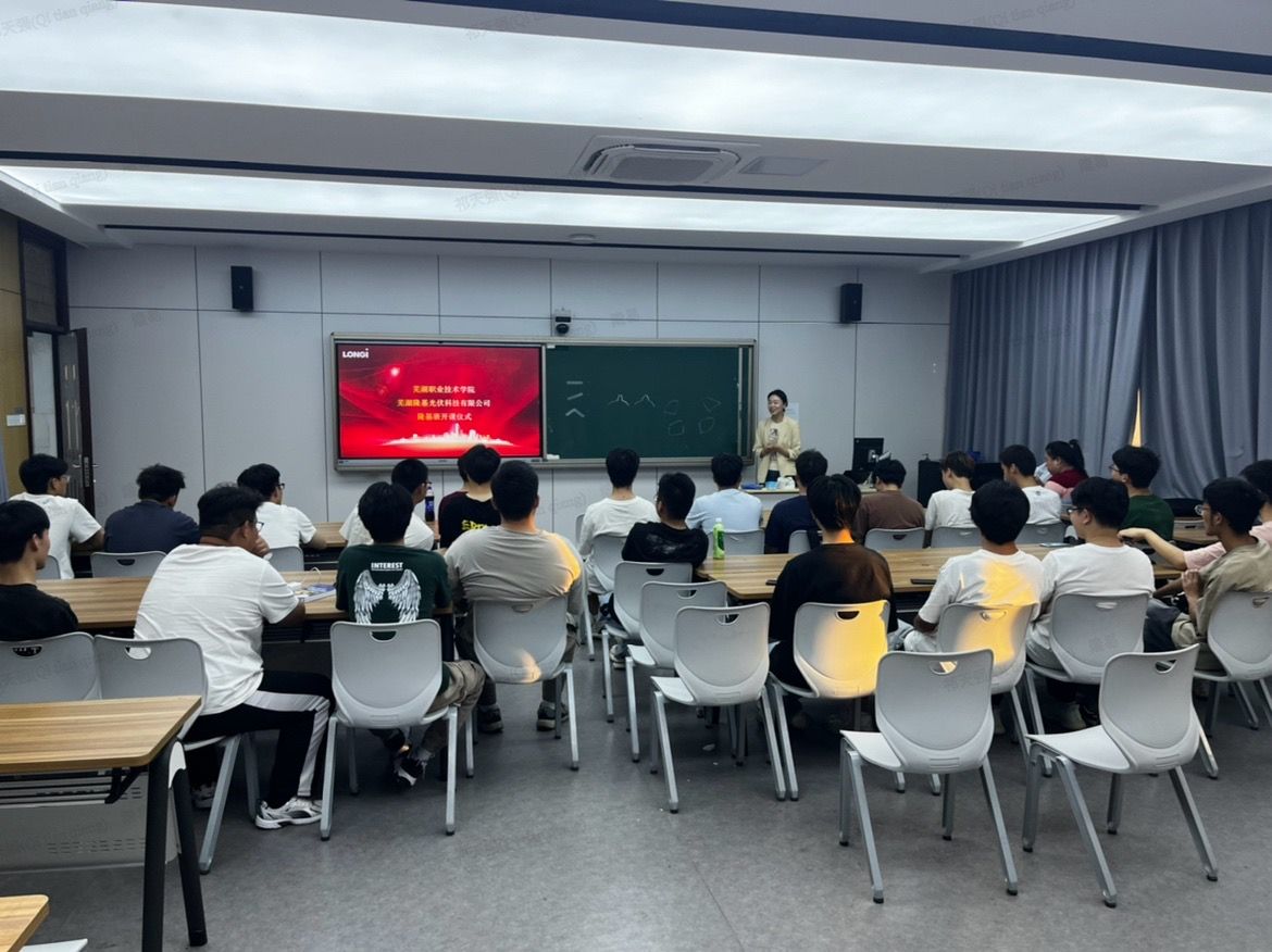 近日,芜湖隆基光伏科技有限公司在智能制造学院新多九教室举行隆基订单班授课启动仪式。公司招聘经理祁天强、培训主管朱美美、企业文化经理茅汉玫、招聘主管曹元林分别给隆基订单班全体学生授课。
