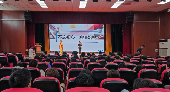 保誉和保安服务集团有限公司董事长、芜湖市劳动模范陶俊,安徽博皖机器人有限公司副总工程师、高级技师、安徽省五一劳动奖章获得者刘彦分别以《不忘初心,方得始终》《青春与机器人共舞,做中国制造的践行者》为题做主题演讲。两位演讲者用朴实的语言和生动的案例分享了他们的奋斗历程和成功经验,也讲述了他们在工作中克服困难、追求卓越的故事,让在场的同学们深受启发。他们强调了劳动的重要性和价值,鼓励同学们珍惜机会,努力学习,争取在各自的领域取得出色的成绩。同时,他们也分享了自己对于职业规划和人生目标的看法,为同学们提供了宝贵的建议和指导。