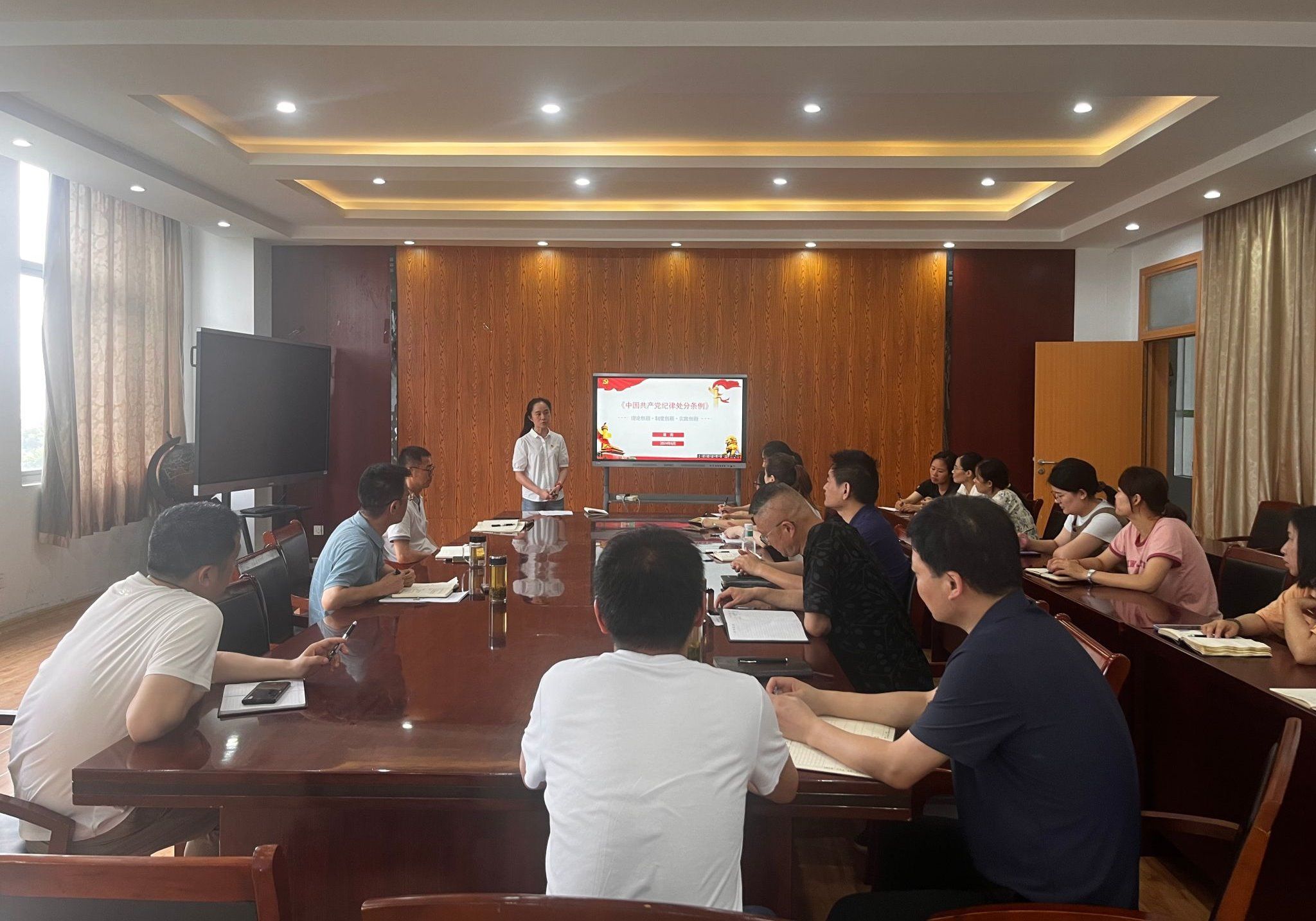 6月19日中午,材料工程学院党总支召开全体党员大会,党总支书记潘莉以“《中国共产党纪律处分条例》的理论创新、制度创新和实践创新”为题,为全院全体党员上了一堂党纪学习教育专题党课。