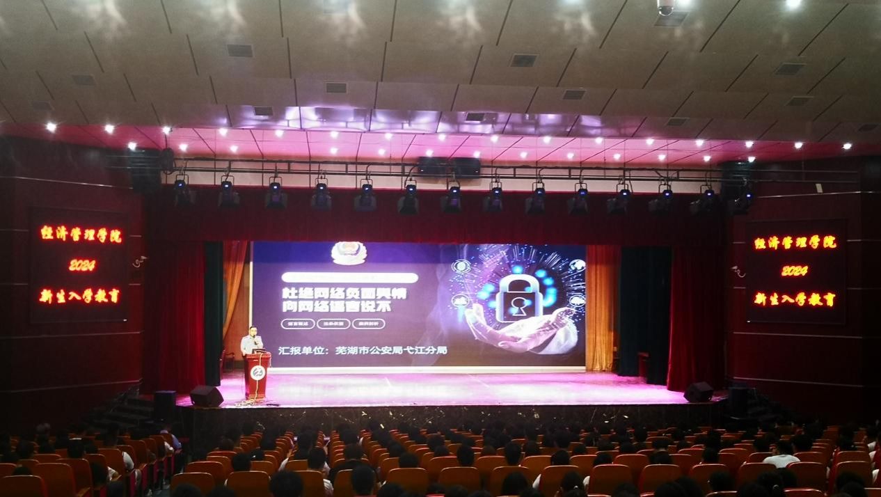 学生安全一直是校园生活的重要议题,围绕近年来频发的电信诈骗事件,学院特别邀请了弋江区派出所的杨祺警官为新生同学们带来反诈专题讲座。杨祺警官以近年发生的真实案件为素材,向同学们介绍电信诈骗的常见形式、恶劣影响以及科学的规避方式,希望同学们能够提高反诈意识,拒绝反诈陷阱。