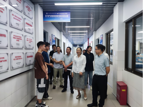 王志鹏一行首先实地查看电气与自动化学院实验实训室场地,对学院实验实训室定位和建设表示肯定,在学院第二课堂训练实训室,王志鹏与正在参加第二课堂学习训练的学生亲切交流,详细了解学生学习生活情况,他勉励学生珍惜青春年华、珍惜学校提供的先进的设备和优良的学习环境,刻苦学习,提高技能,努力成为可堪大用、能担重任的栋梁之材。