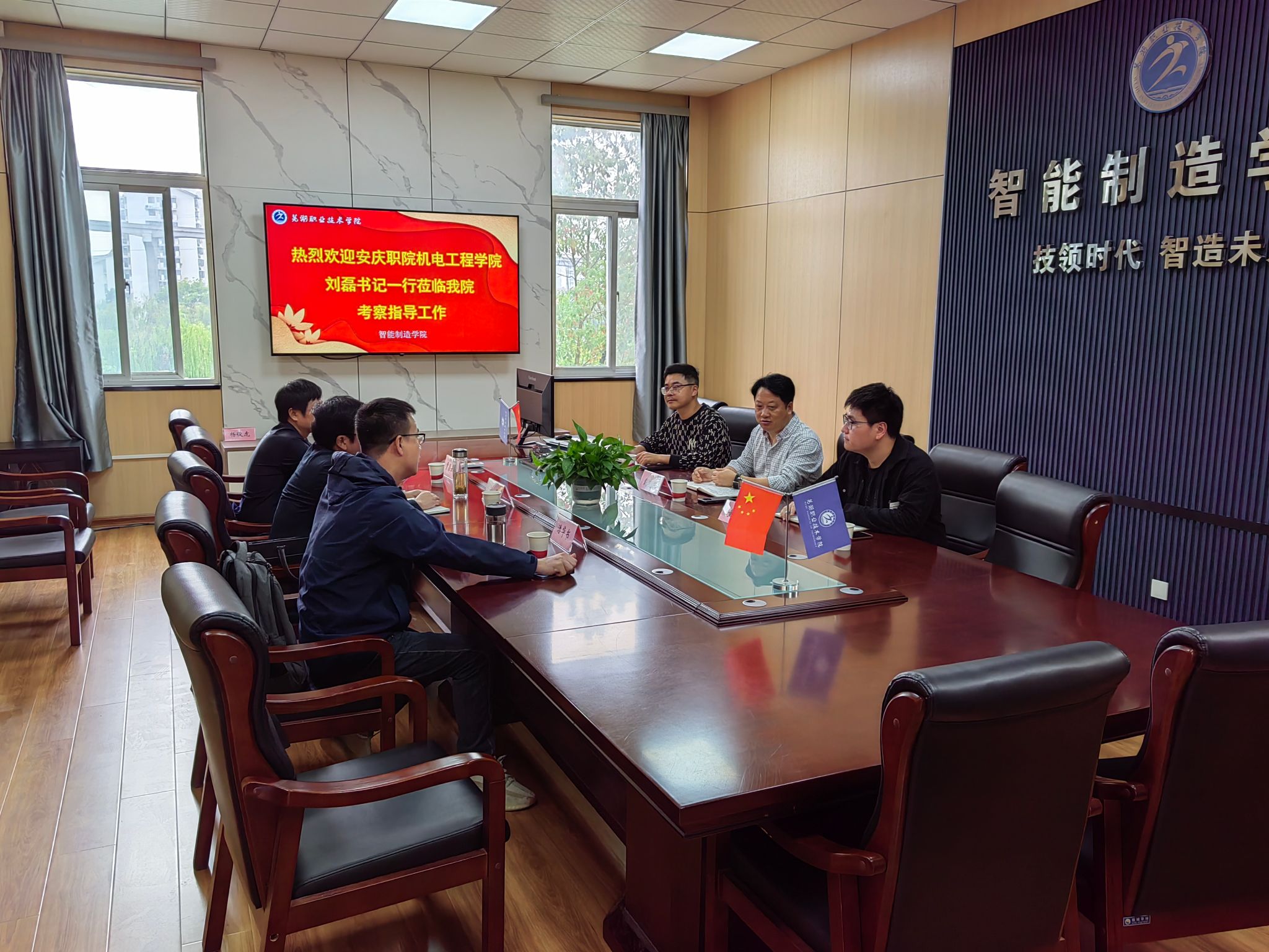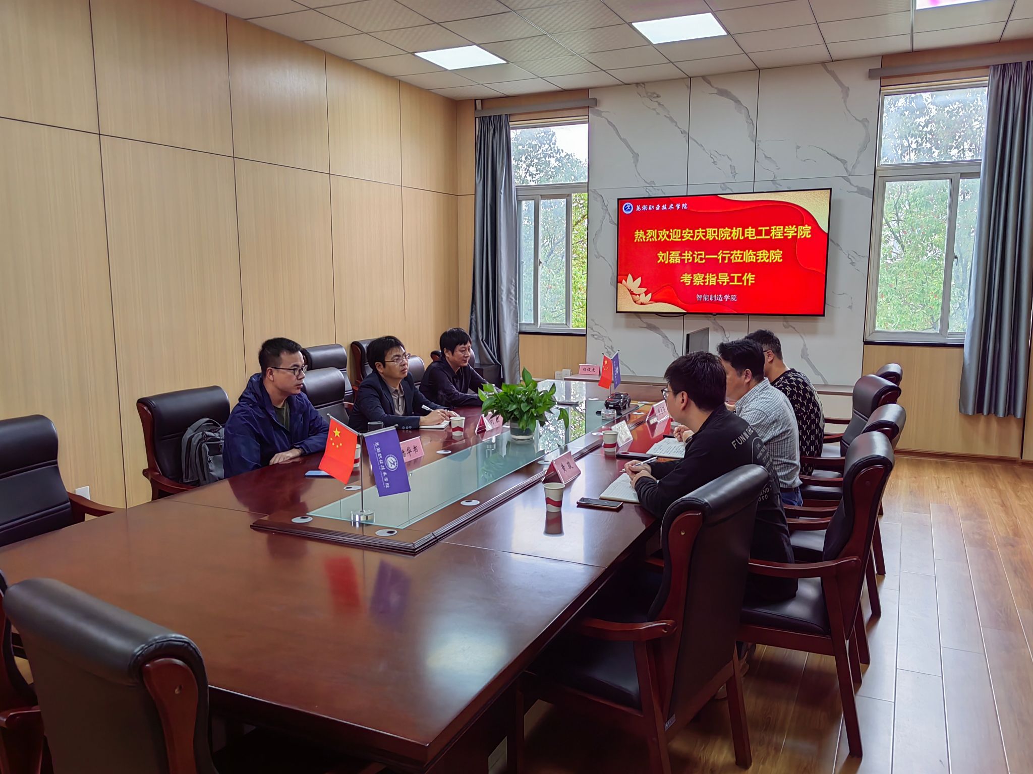 刘磊对学校的热情接待表示感谢,并简要介绍了安庆职业技术学院历史沿革和办学成果,希望与我校在专业建设、课程建设、师资队伍培养等方面展开多方合作与交流。