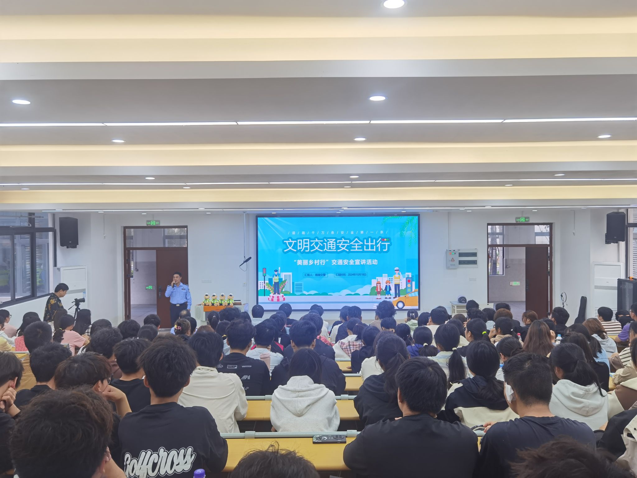 为提升学生们的交通安全意识,加强交通标识认知,明确出行安全注意事项,共同营造文明、安全的交通环境。10月18日,芜湖职业技术学院南陵校区与南陵县公安局交管大队联合举办了一场交通安全宣讲活动,现代物流智造学院(筹)行政负责人周自宝及辅导员王恺、南陵县公安局副局长何振宇及交警大队相关工作人员参加了此次活动。