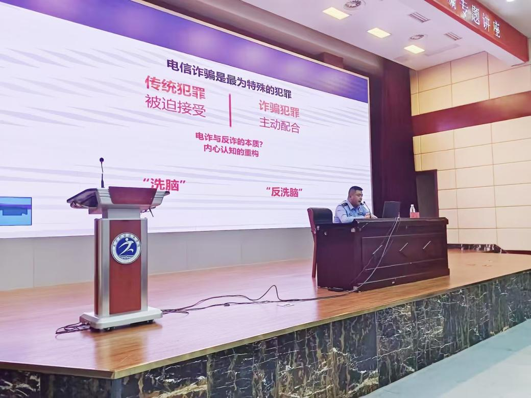 汪欣以生动的案例和详实的数据,向同学们介绍了当前最新的诈骗手段,通过各种防诈骗短视频来提醒同学们要时刻保持警惕,增强防范意识。最后,汪欣给同学们提出几点建议,不轻易相信陌生人的电话和短信,不随意透露个人信息,不点击不明链接,遇到可疑情况及时向警方报案。