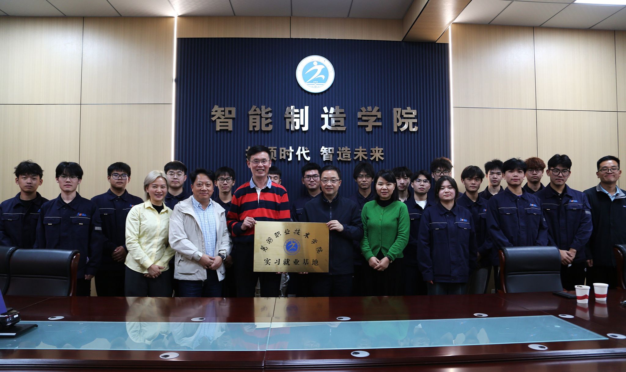 会见结束后,王志鹏代表学校向金纬公司授实习就业基地牌匾。何海潮一行在智能制造学院进行了2024级金纬机械班的遴选并组织了开班典礼。