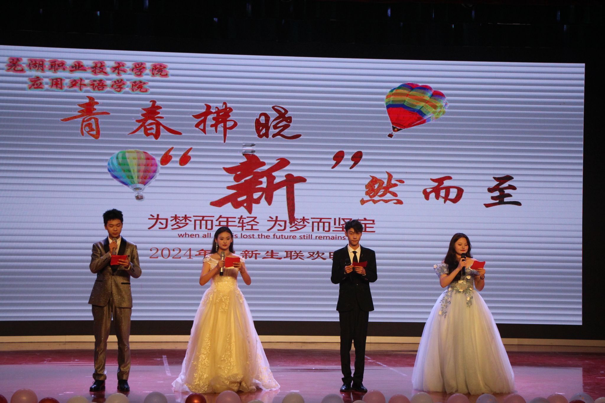10月24日晚,应用外语学院在学校大礼堂举行“青春绽放,梦想起航”迎新生文艺晚会。学院班子、全体辅导员以及2024级全体新生共同观看演出。