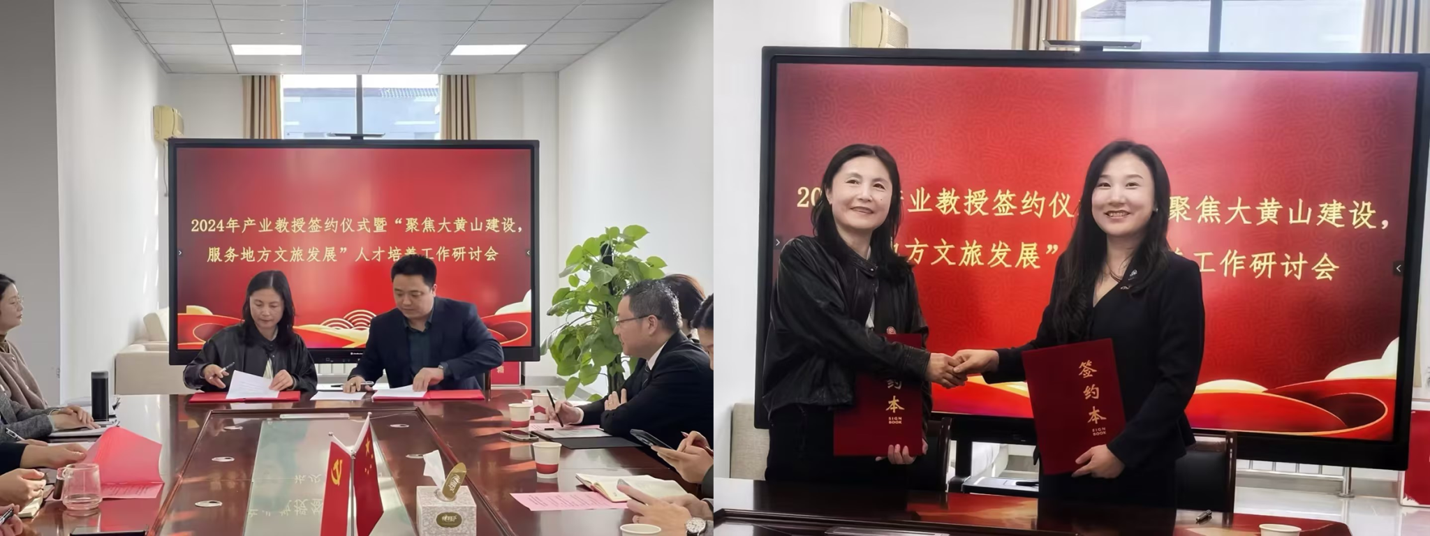 10月30日下午,人文旅游学院在博实楼会议室举办2024年产业教授签约仪式暨“聚焦大黄山建设,服务地方文旅发展”人才培养工作研讨会。来自酒店、旅行社、研学机构的七位产业教授应邀参会,学院党总支书记孙坤、副院长孙蔚闻及各专业负责人、教研室主任、教师代表参会。会议由副院长徐军主持。