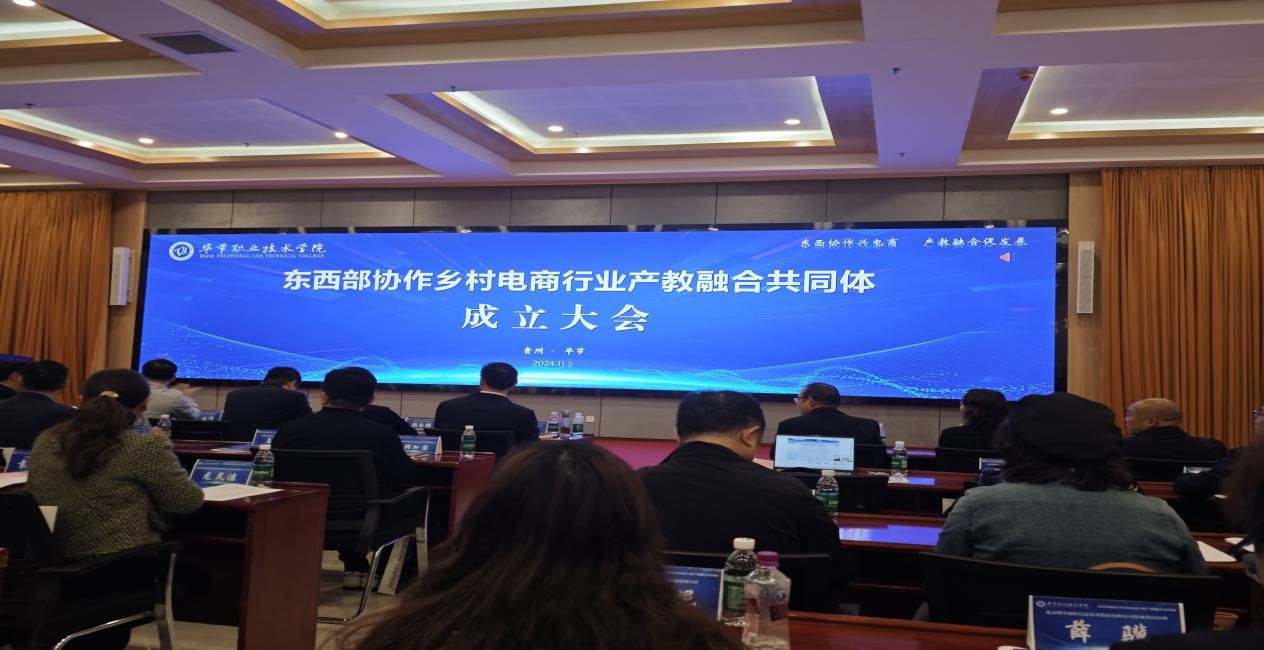11月5日,东西部协作乡村电商行业产教融合共同体成立大会在毕节职业技术学院举行。我校党委委员、副院长朱志国携电子商务专业骨干教师参加。