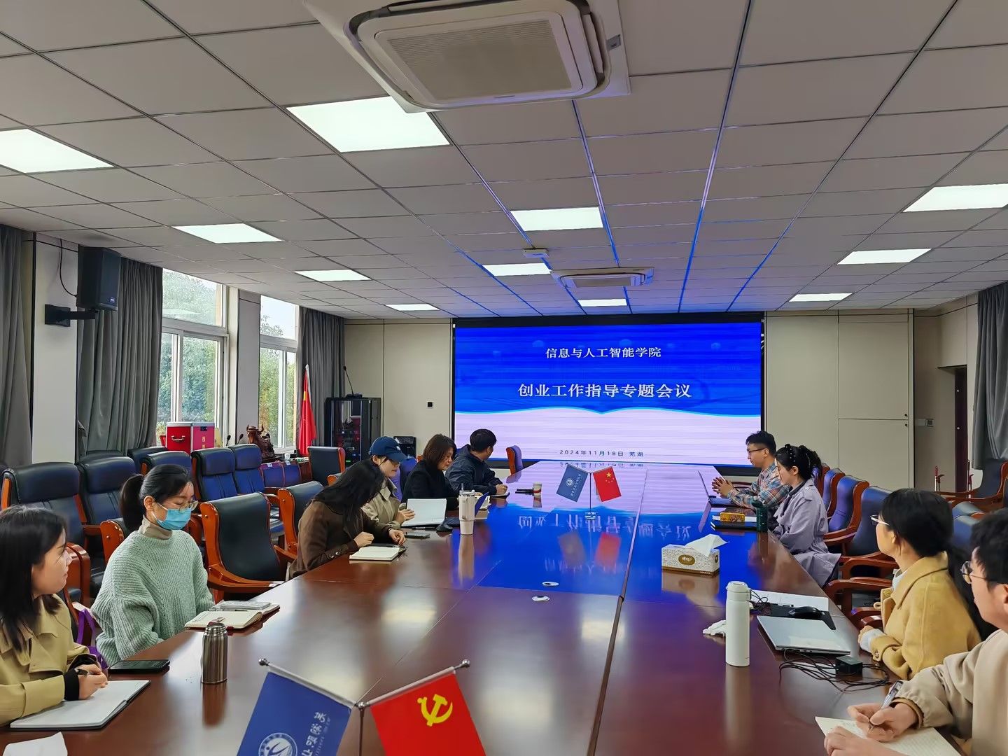 11月18日,信息与人工智能学院举办了创业工作指导专题会议。此次会议由学院党总支副书记杨琦主持,创新创业学院院长丁祖祥做创业工作专题讲座,全体辅导员参加了会议。