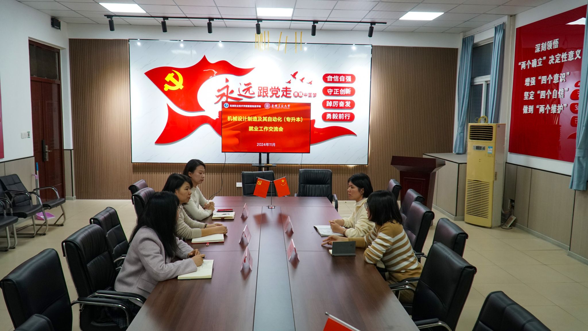 11月20日,智能制造学院邀请安徽工业大学机械工程学院教学秘书李洋洋、辅导员陈洁来校开展就业学工交流会。智能制造学院党总支书记计荣、学工科长江晓、本科班辅导员王慧参加了交流座谈会。