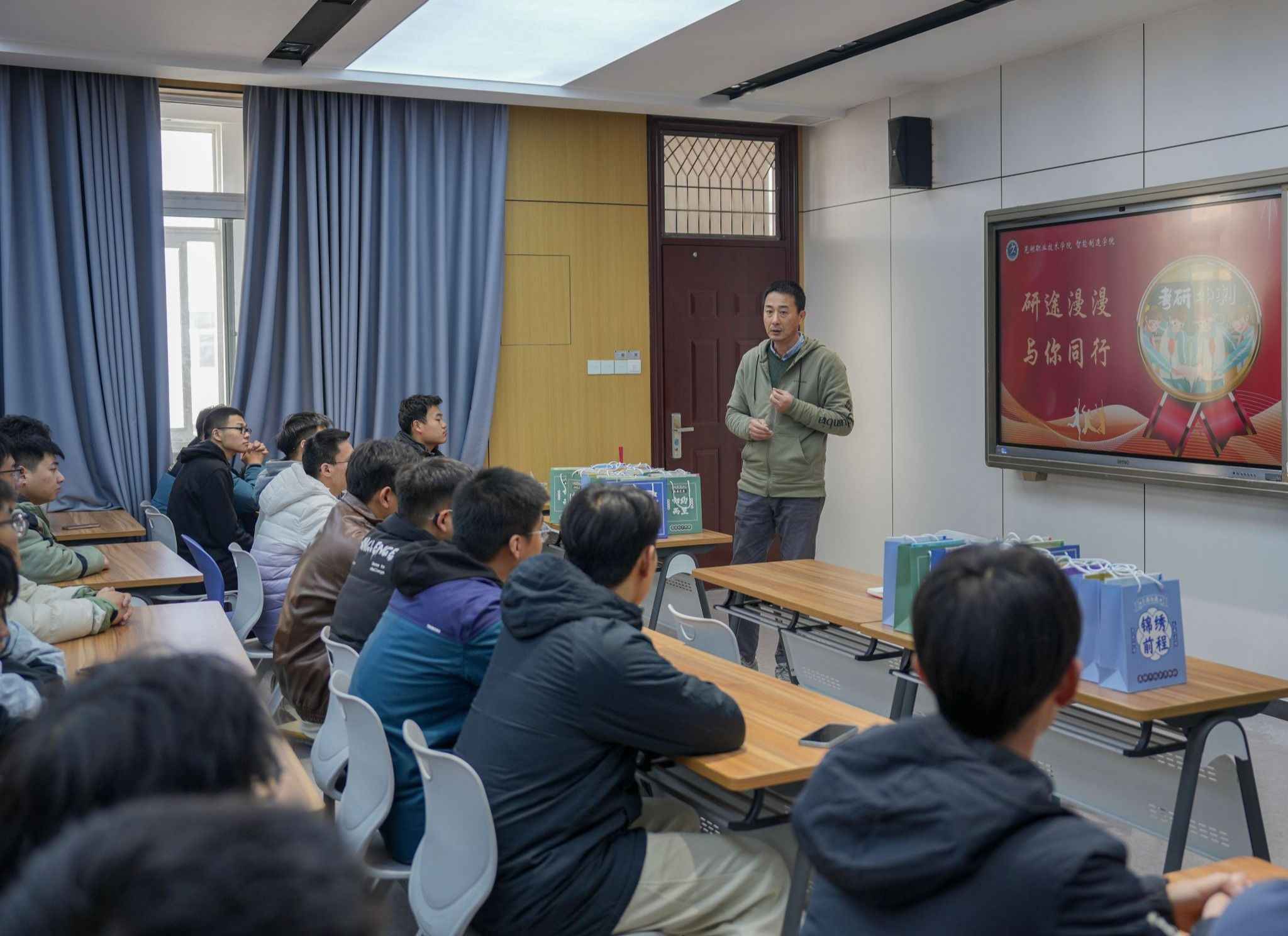 为鼓励考研学子积极迎考,坚定考研信心,缓解备考压力,11月28日,智能制造学院于惟实楼新多九教室为2025届机械设计制造及其自动化专业考研学生举办“研途漫漫 与你同行”考研慰问活动。智能制造学院党总支书记计荣、副院长朱强、辅导员王慧以及2025届考研学子参与此次活动,活动由王慧主持。