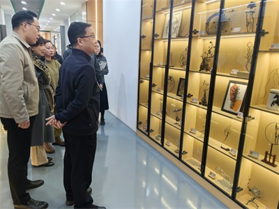 王志鹏先后走访了艺术传媒学院铁画非遗传承基地、陶艺展厅、校企共建直播中心等实训室,并参观了师生的文创作品。艺术传媒学院党政负责人简要介绍了学院专业建设、技能大赛、社会服务、招生就业、创新创业等方面的基本情况,汇报了学院取得的成绩和发展中存在的困难。