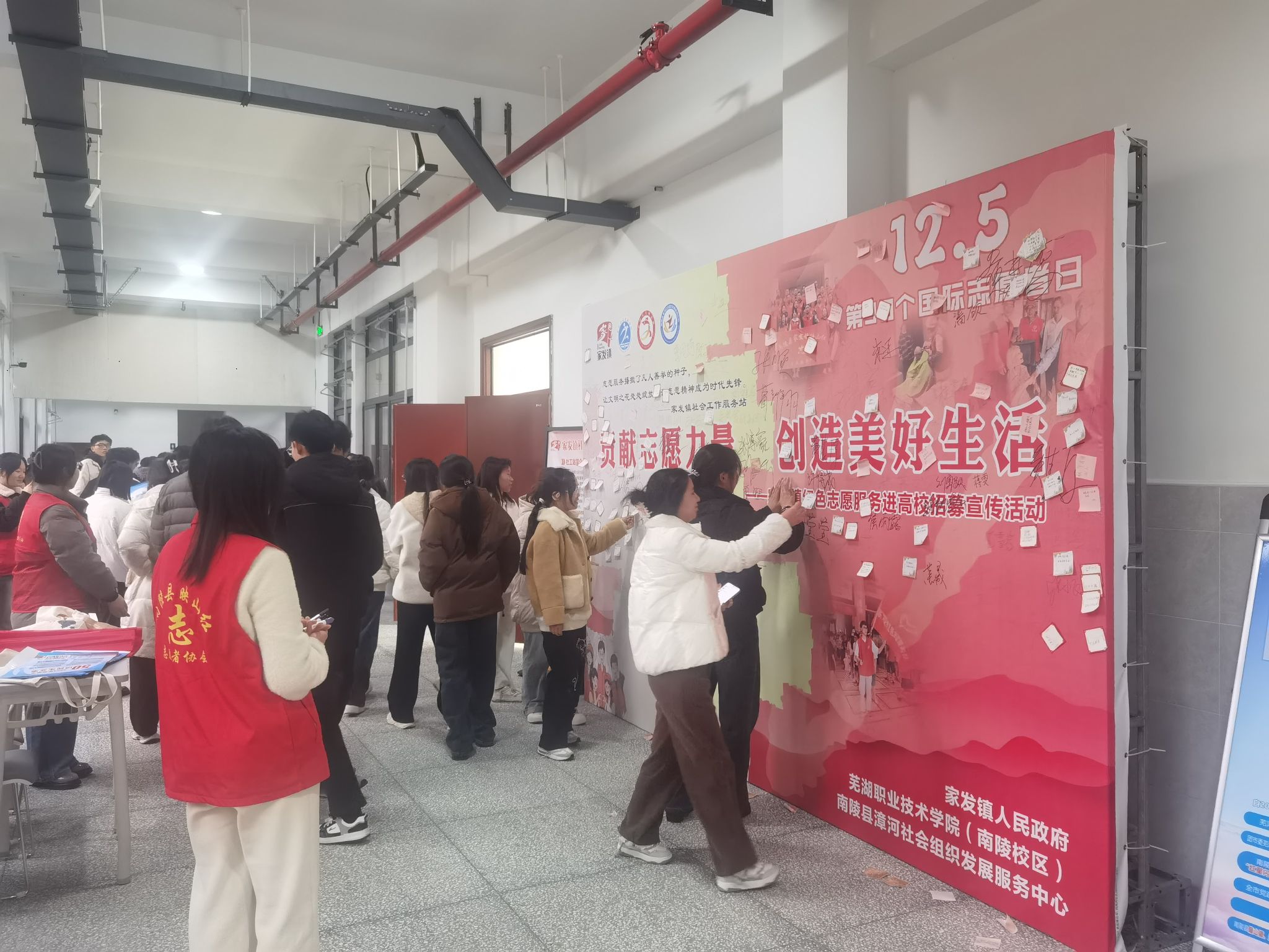 12月5日,现代物流智造学院携手家发镇联合举办了“贡献志愿力量,创造美好生活”为主题的红色志愿服务进高校招募宣传活动,此次活动激发了广大学子的社会责任感和服务热情,为传承红色基因、弘扬志愿精神注入了新的活力。