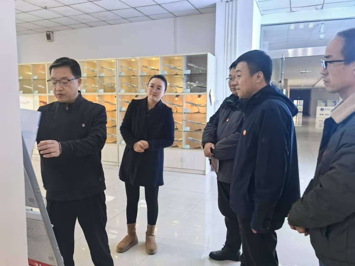 王志鹏首先参观了正德楼一楼空中乘务专业实训基地,了解院企合作共建的空乘专业实训基地建设情况及空中乘务专业近年发展现状。随后,走访明德楼参观应用外语现代服务实训中心基地。