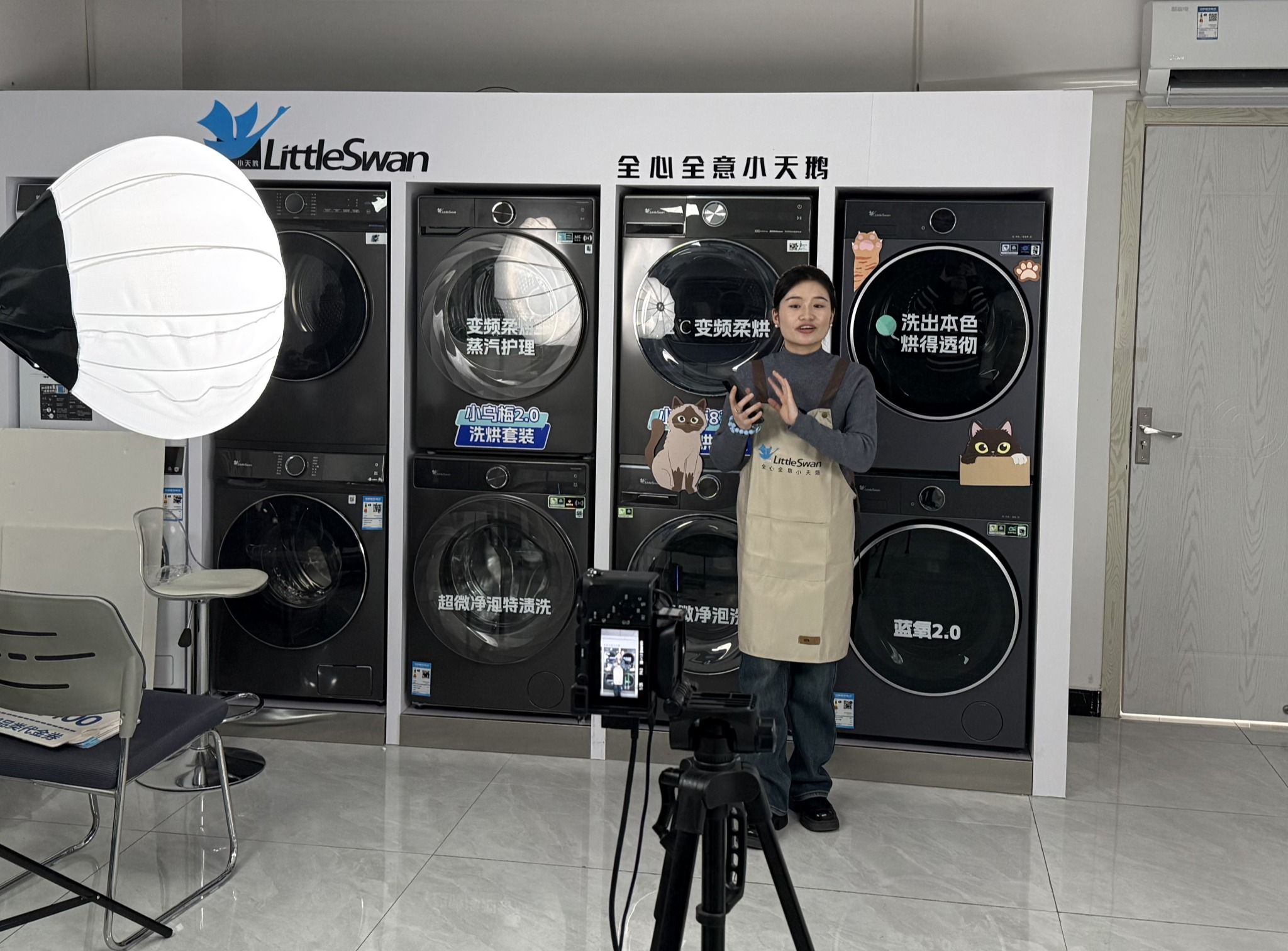 随后,李茜翱陪同王伟一行参观了COLMO智感体验馆,并现场观看学院2022级市场营销专业学生廖俊莉进行小天鹅品牌直播实践,沉浸式感受校企育人成效。
