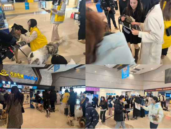 同日下午,食品与生物工程学院于万达影城举办了一场别具特色的文明养宠观影宣传活动。此次活动邀请了宠物主人携同他们的爱宠一同观赏经典影片《狮子王》,现场的志愿者们分发宣传资料并普及文明养宠的相关知识。影片通过描绘动物与人类和谐相处的故事情节,生动地向每位在场的观影者传达了文明养宠的理念。在主人的陪伴下,狗狗们安静地进入影院,成为这场电影活动中的温馨焦点。