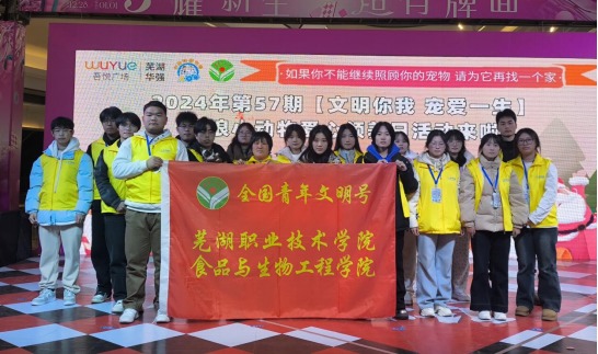 12月22日,全国青年文明号——芜湖职业技术学院食品与生物工程学院率领大学生社团“明宠社”志愿者,在吾悦广场开展第57期“文明养宠,宠爱一生”大型公益领养活动,并在万达影城举办文明养宠观影活动,通过丰富多彩的形式向市民普及文明养宠理念,为流浪动物找到温暖的家。