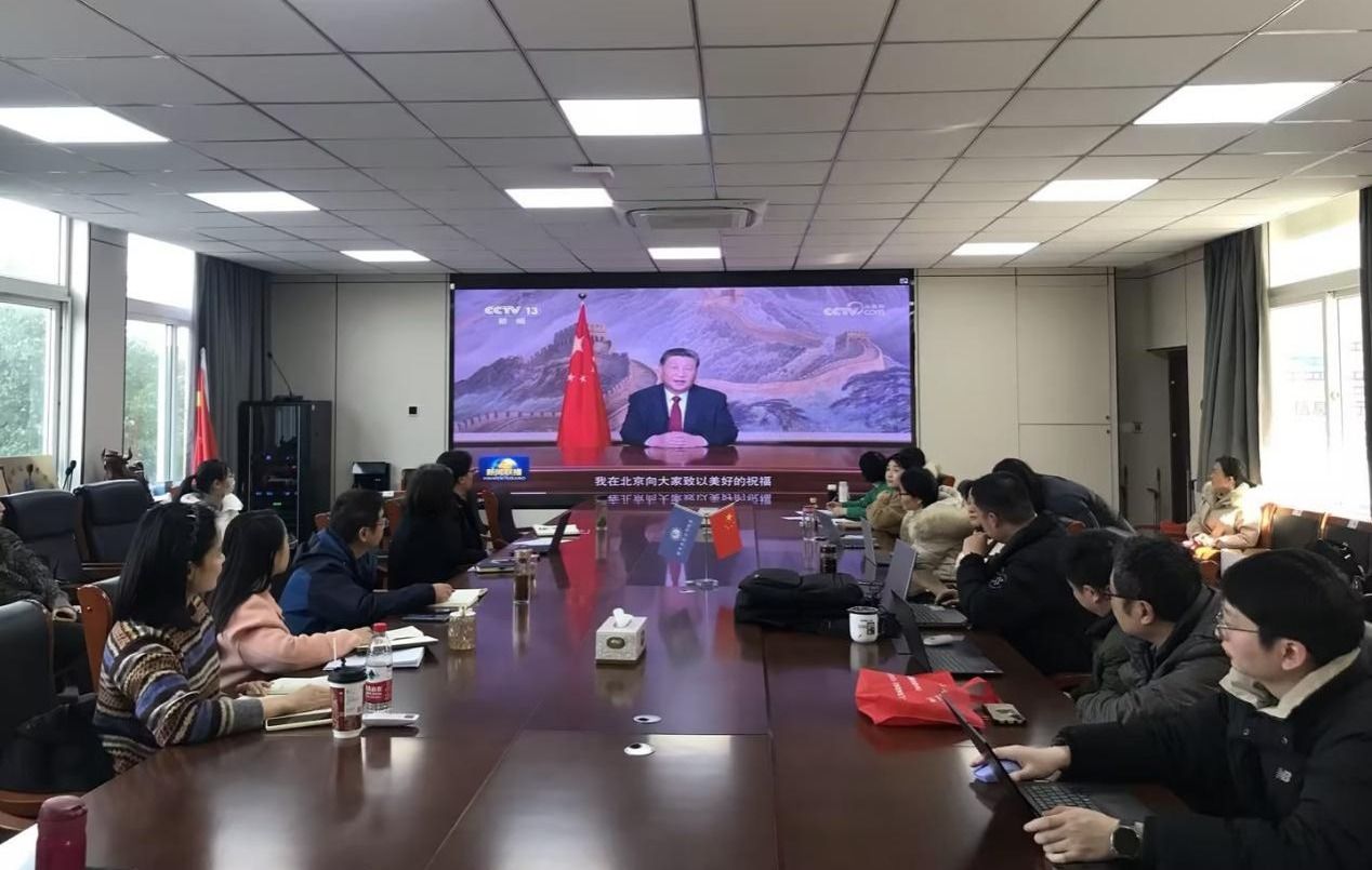 1月3日,信息与人工智能学院组织全体教职工在信实楼208深入学习习近平主席二〇二五年新年贺词。