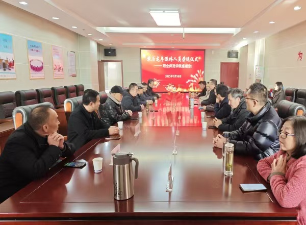 1月16日上午,职业师范学院在德正楼会议室举行了简朴而又庄重温馨的荣退仪式,以表达对退休教师的敬意与感谢。学院党政领导班子成员、分工会负责人及教师代表与8位农历龙年退休教师一起出席仪式。