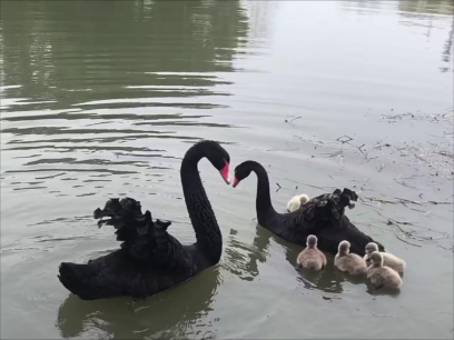 经过近两个月的悉心照料,天鹅顺利孵化出七只小天鹅。毛茸茸的小家伙们在水面上悠然游弋,萌态可掬,吸引了众多师生驻足观赏。