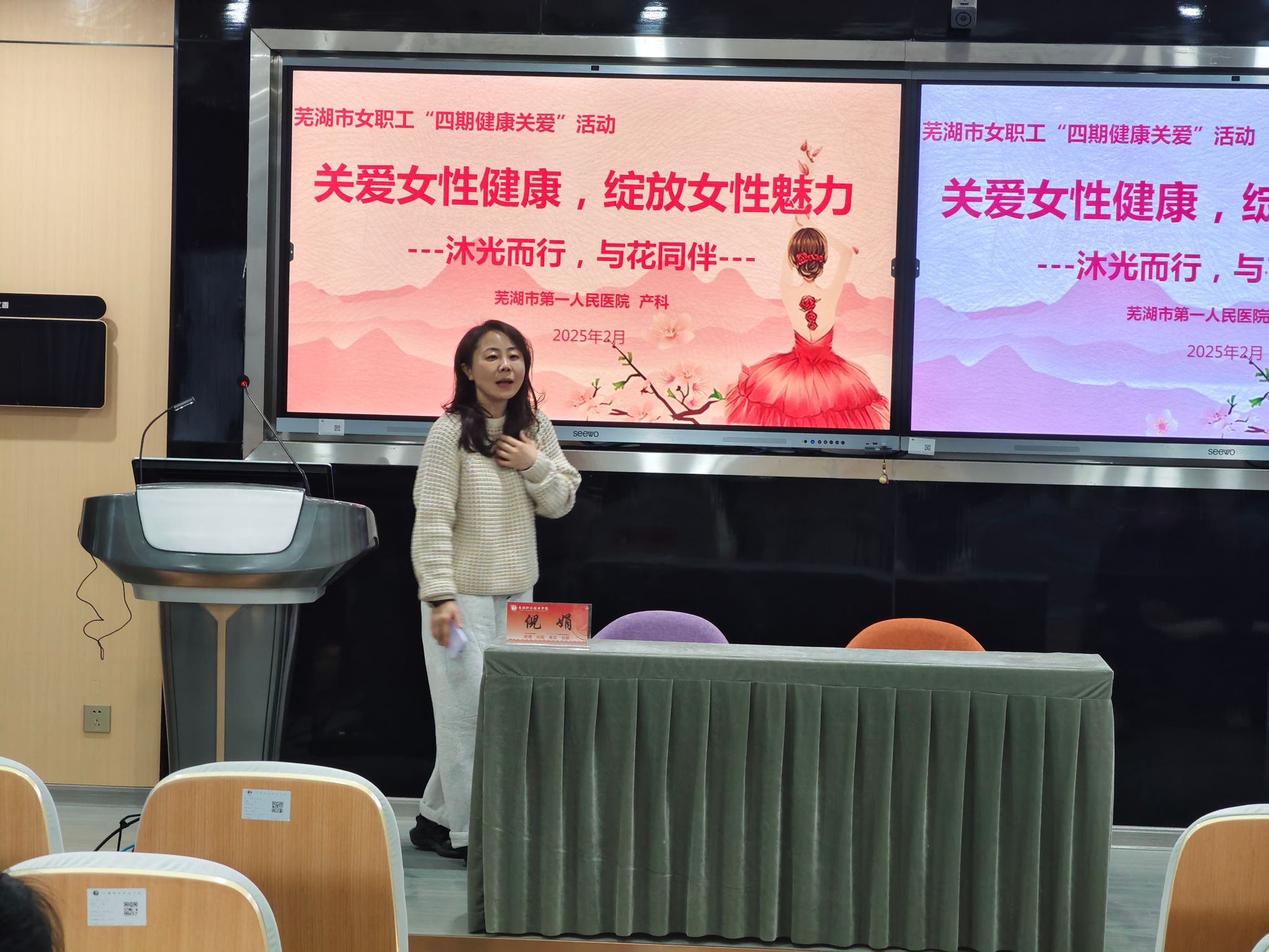 来自芜湖市第一人民医院的资深妇产科专家、副主任医师倪娟,为在场女教职工带来了一场精彩纷呈、干货满满的专题讲座。讲座全面覆盖女性全生命周期的六大生理阶段,对各阶段的生理特点与健康管理要点展开了细致入微地剖析。尤其在生育期乳腺疾病和宫颈疾病的预防方面,倪娟医生凭借专业知识与丰富经验,给出了科学的预防措施与极具针对性的健康建议。针对更年期女性,倪娟医生还无私分享了健康管理的实用技巧,助力女教职工从容应对这一特殊时期的身心挑战。