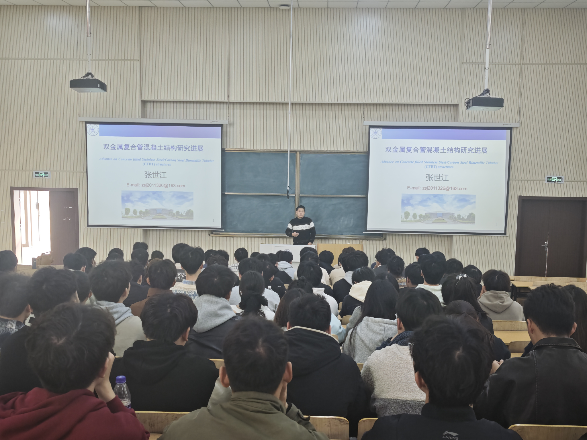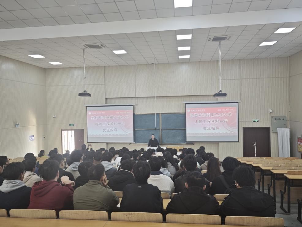 安徽工业大学建筑工程学院两位老师分别就自己目前的研究开展了相应的学术报告。张士将老师介绍了双金属复合管混凝土结构研究进展,鲍海英老师介绍了轻质吸能材料结构研究。学术报告结束后,两位老师又分别给24级土木两个班级学生进行工程造价和结构力学的专业课教学,课堂上,大家认真听讲并积极举手发言,气氛活跃。