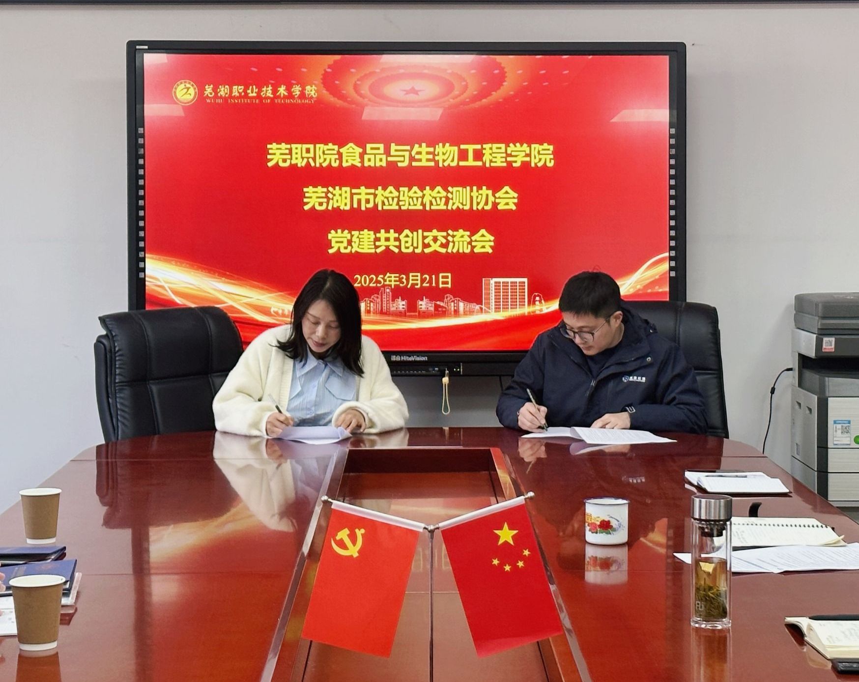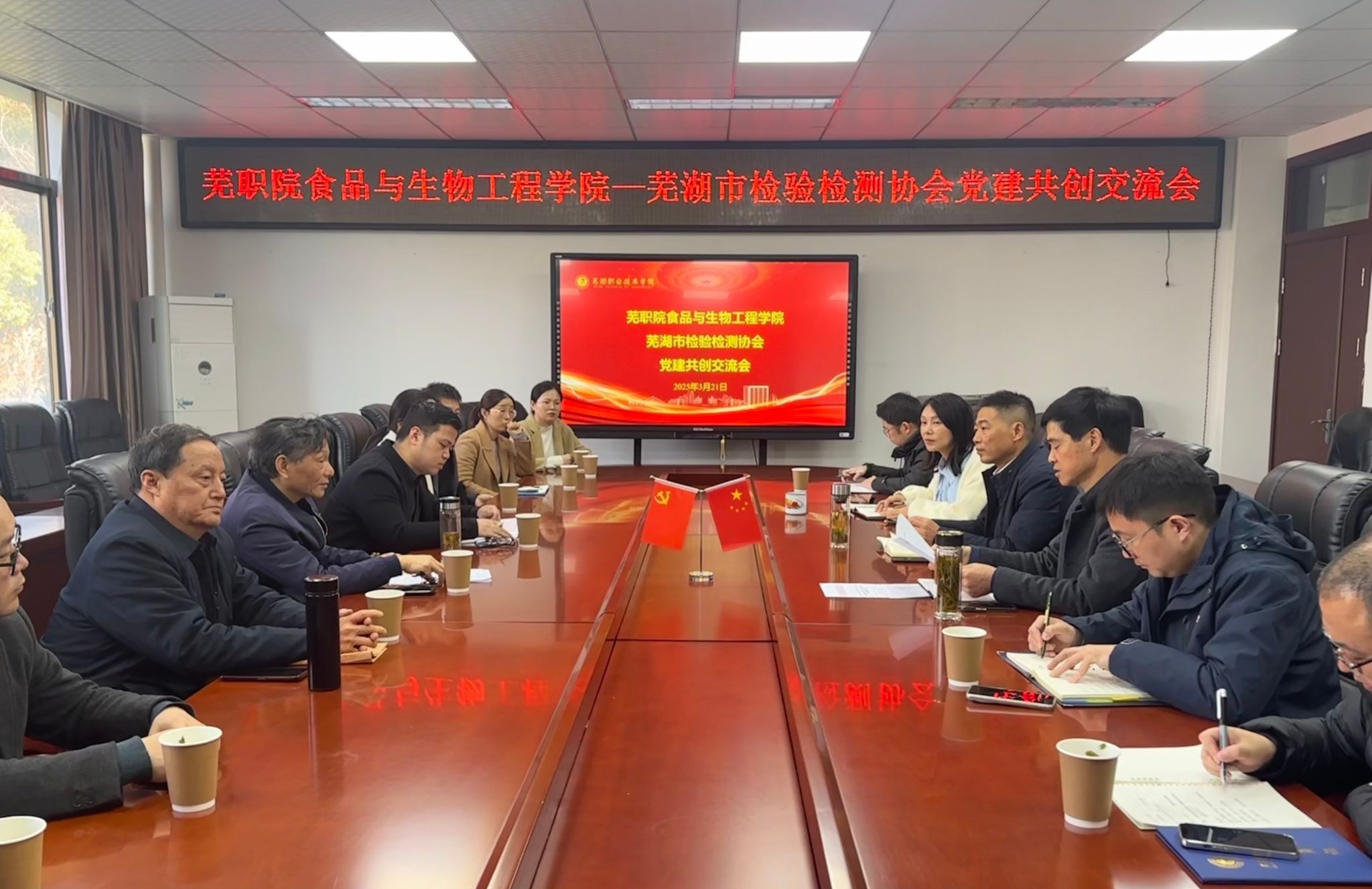 3月20日,我校食品与生物工程学院与芜湖市检验检测协会联合开展的党建共创交流会在学院会议室举办。芜湖市检验检测协会会长刘先华、协会企业党员代表及学院班子成员等齐聚一堂,共谋党建与业务合作发展新路径。