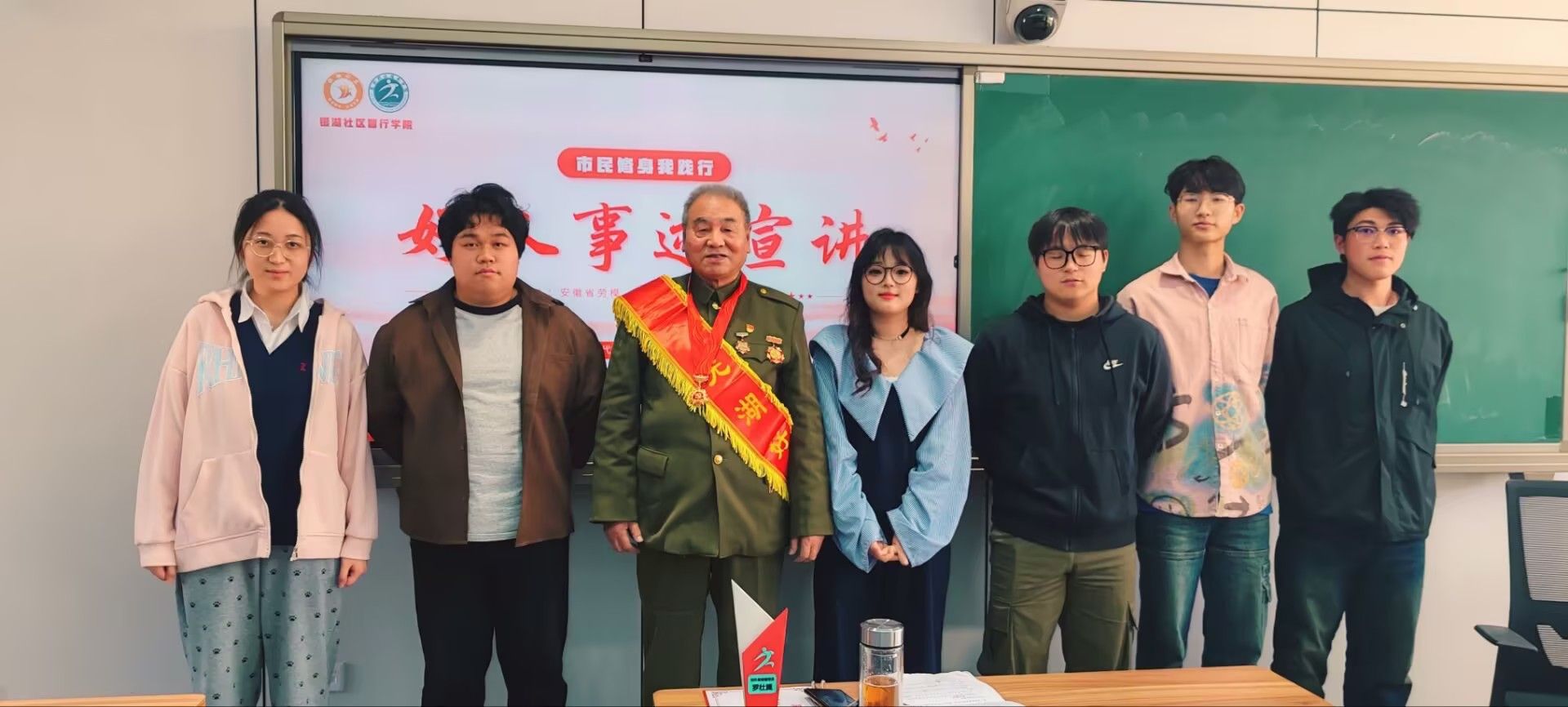 讲座结束后,罗壮翼被学生层层围住合影纪念,同学们表示,在今后的学习和生活中,将以罗壮冀先生为榜样,努力学习,积极奉献,争取早日成为一名合格的共产党员。