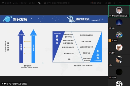 本次线上招聘活动通过腾讯会议的方式开展,招聘单位通过腾讯会议播放企业宣传片、共享PPT等方式向毕业生们展示企业文化、岗位需求、发展前景、薪资待遇等信息。2025届毕业生踊跃参会。