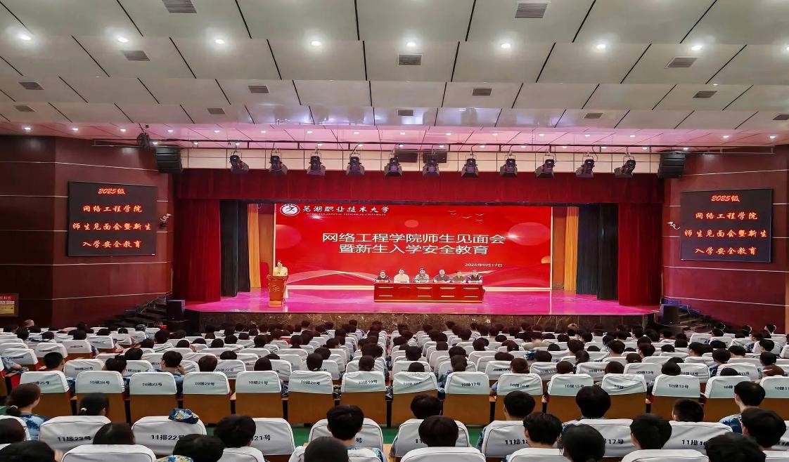 9月17日,网络工程学院在文津校区大礼堂举办师生见面会暨新生入学安全教育活动。学院党总支书记商建国,副院长张亮亮、陈德林、专业带头人和辅导员代表及2025级全体新生参会。在雄壮威严的国歌声中,本次师生见面会正式拉开帷幕。
