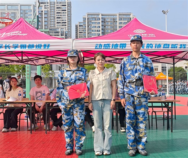 分列式结束后,进行了军体拳表演,新生们动作精准有力、气势如虹,传递出不畏困难、勇于拼搏的精神,赢得现场阵阵掌声。表演完毕后,金怡宣读了2025年军训工作表彰决定,获奖的先进个人和先进集体代表依次上台领奖。