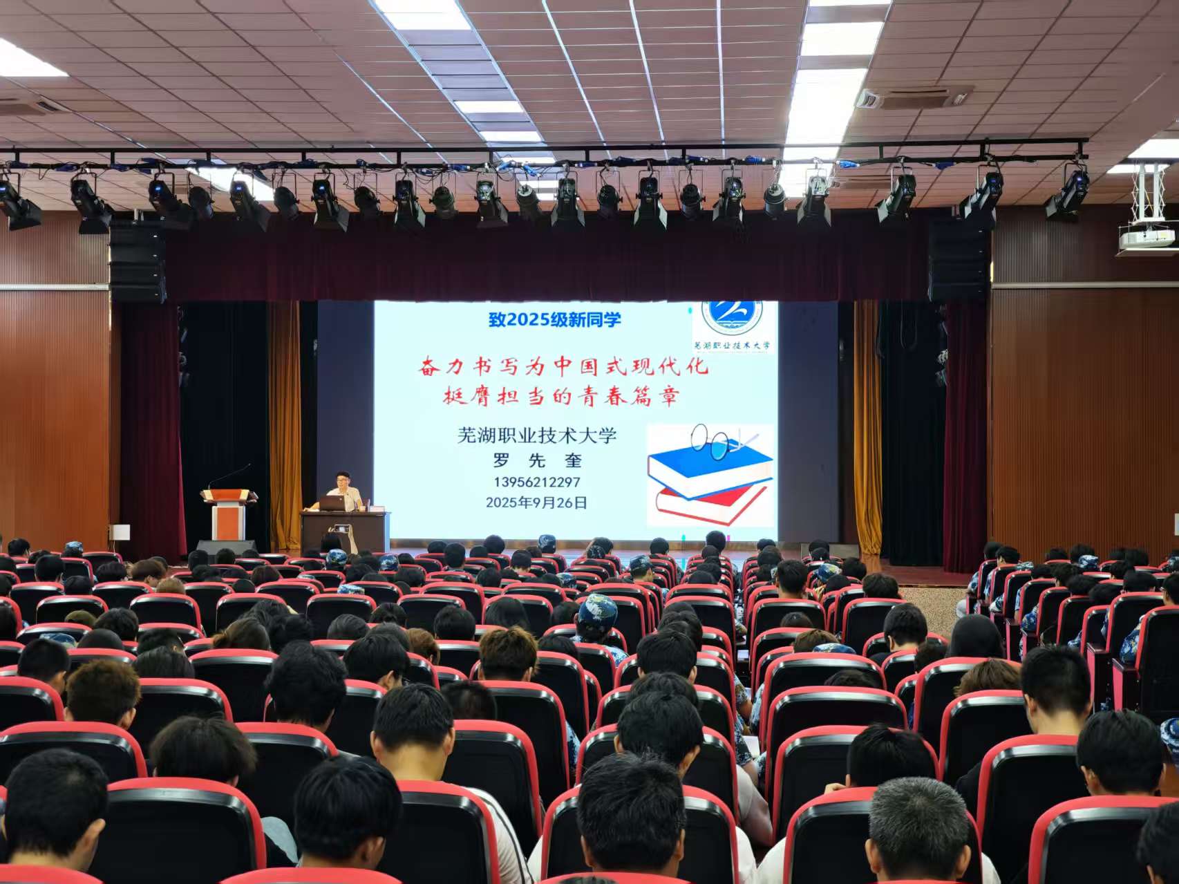 9月26日下午,信息与人工智能学院在银湖校区大礼堂组织开展新生“思政第一课”,本次讲座特邀我校马克思主义学院党总支书记、罗先奎教授主讲,以“奋力书写为中国式现代化挺膺担当的青春篇章“为主题,用一堂有深度、有力量的思政课,为新生的大学生涯注入青春底色。