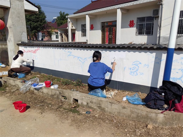 11月15日,艺术传媒学院、园林园艺学院和校易班发展中心的60余名学生志愿者,在芜湖市科技特派员许辉和张鸣祥的组织带领下,赴南陵县何湾镇丫山合村村太平村民组开展“青年红色筑梦之旅”活动——“彩绘乡韵 筑梦田间”主题墙绘志愿服务,以艺术赋能乡村,用画笔点亮生活。
