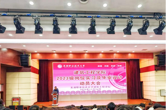 11月26日,建筑工程学院2023级毕业生岗位实习及毕业设计动员大会。学院党总支书记汪涛、院长方从严出席会议并作动员讲话,全体2023级学生参加,共同开启毕业阶段的关键准备工作。