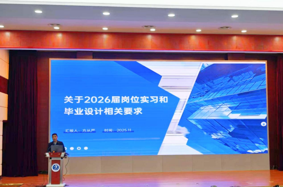 方从严围绕2026届岗位实习与毕业设计的具体要求展开说明,从实习单位资质审核、岗位匹配规范到毕业设计选题方向等方面,明确了时间节点与质量标准。他指出,实习内容应与专业深度结合,毕业设计需突出实践应用价值,并建议同学们提前规划、主动联系指导教师,确保实习与设计工作的专业性和实用性。