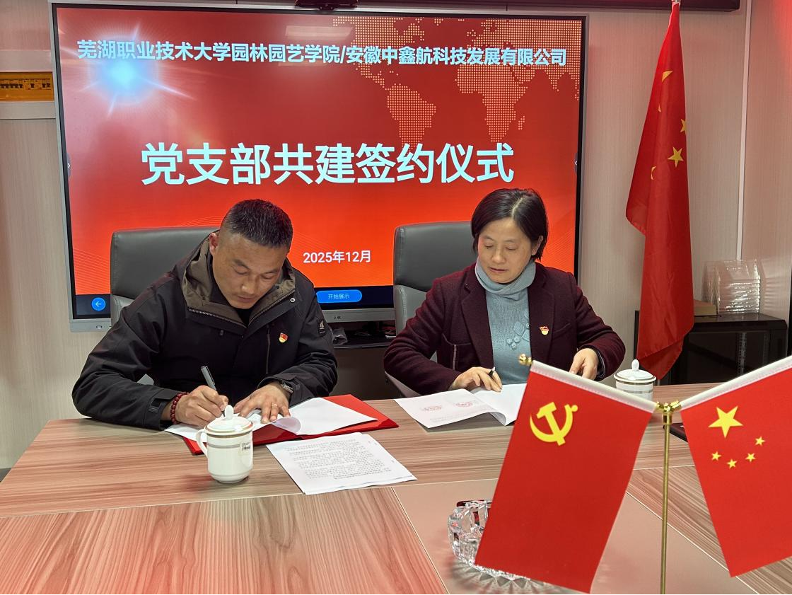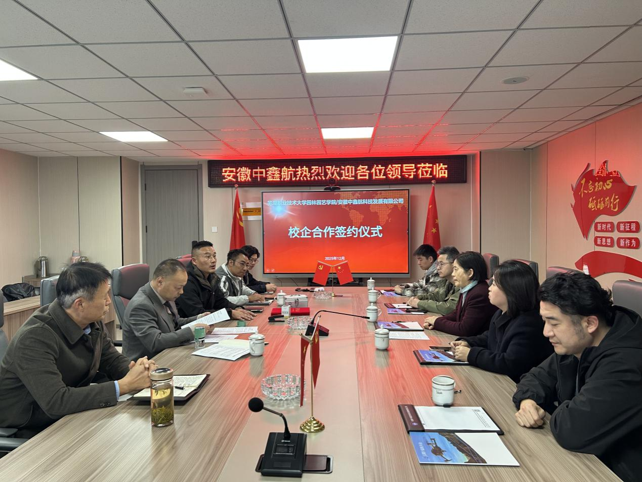 12月2日,园林园艺学院与安徽中鑫航科技发展有限公司签订校企合作协议和党建共建协议。安徽中鑫航科技发展有限公司董事长王大东、总经理陶尚国,园林园艺学院党总支副书记章素华、王静,园林工程技术教研室主任闻治江、安徽省技术能手浦强松,辅导员晏涛参加签约仪式。