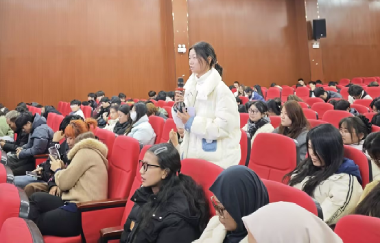 讲座结束后,现场开展了互动问答环节。徐希、伍昆两位法官围绕大学生日常生活中常见的法律问题,如恋爱财产纠纷、兼职权益保护、留学生法律求助途径等,与同学们进行亲切交流。同学们积极回应,法官逐一答疑解惑,现场气氛热烈。