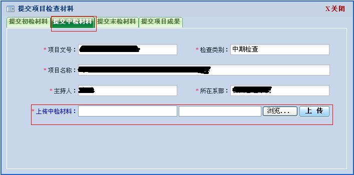 第三步:参检项目在“提交中检材料”页面中上传打包好的中检材料文件即可。