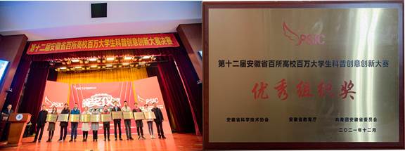 第十二届安徽省“双百大赛”于2021年5月正式启动,共有来自72所高校2973名学生参赛,共提交作品2269件;大赛经过初赛、复赛和网络投票等环节,评选20件作品入围决赛。在决赛阶段,我校选手与安徽大学、合肥工业大学、安徽师范大学、安徽理工大学等省内知名高校团队同台竞技,最终,学生处何玉梅老师指导的作品《向日葵的新生》、食品与生物工程学院朱广双老师指导的作品《二师兄吃上了中草药》分别荣获一等奖、二等奖,这也是学校在“双百大赛”中首次获此殊荣,同时学校被授予大赛优秀组织奖。