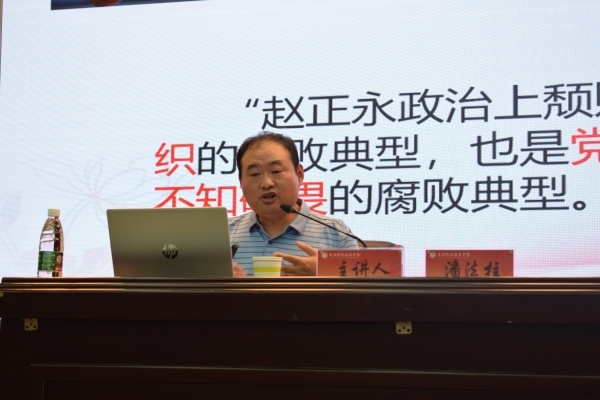 潘法柱从“当前党风廉政建设和反腐败斗争形势”“增强规矩意识、纪律意识”“严格履行党风廉政建设职责”三个方面,阐述了当前党风廉政建设、反腐斗争的形势,列举了各种违反廉政要求的现象与数据,强调反腐倡廉永远在路上,并就如何做好反腐倡廉工作阐明了纪律意识、规矩意识和廉政职责的具体要求。他以当前典型腐败案件为例,有的放矢地进行了生动的讲解,并结合自己多年来从事纪检监察工作的经验与体会,就学员在今后的工作中如何开展好党风廉政教育工作提出了具体要求和建议。