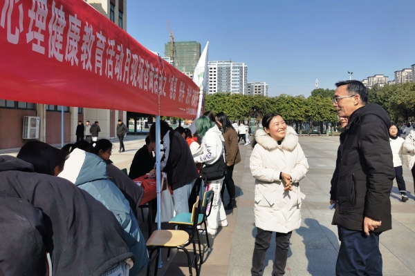 12月4日,我校大学生健康成长指导中心携手校内外专兼职心理咨询师在南北校区食堂前开展了心理健康知识宣传、主题签名及预约咨询活动。校党委副书记吴长湖亲临活动现场进行指导。他指出大学生健康成长指导中心要加强心理健康知识的宣传和普及,帮助同学们增强预防心理疾病的意识,促进同学们的身心健康发展。