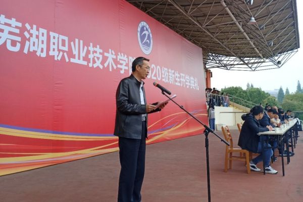 高武和吴长湖分别在南、北两个校区发表了激情澎湃的开学典礼致辞。他们首先代表学校向2020级新同学表示最热烈的欢迎,深情寄语来校学子,以芜职作为人生的起点,去闪耀青春的光辉,去勇担实现中华民族伟大复兴的历史使命。