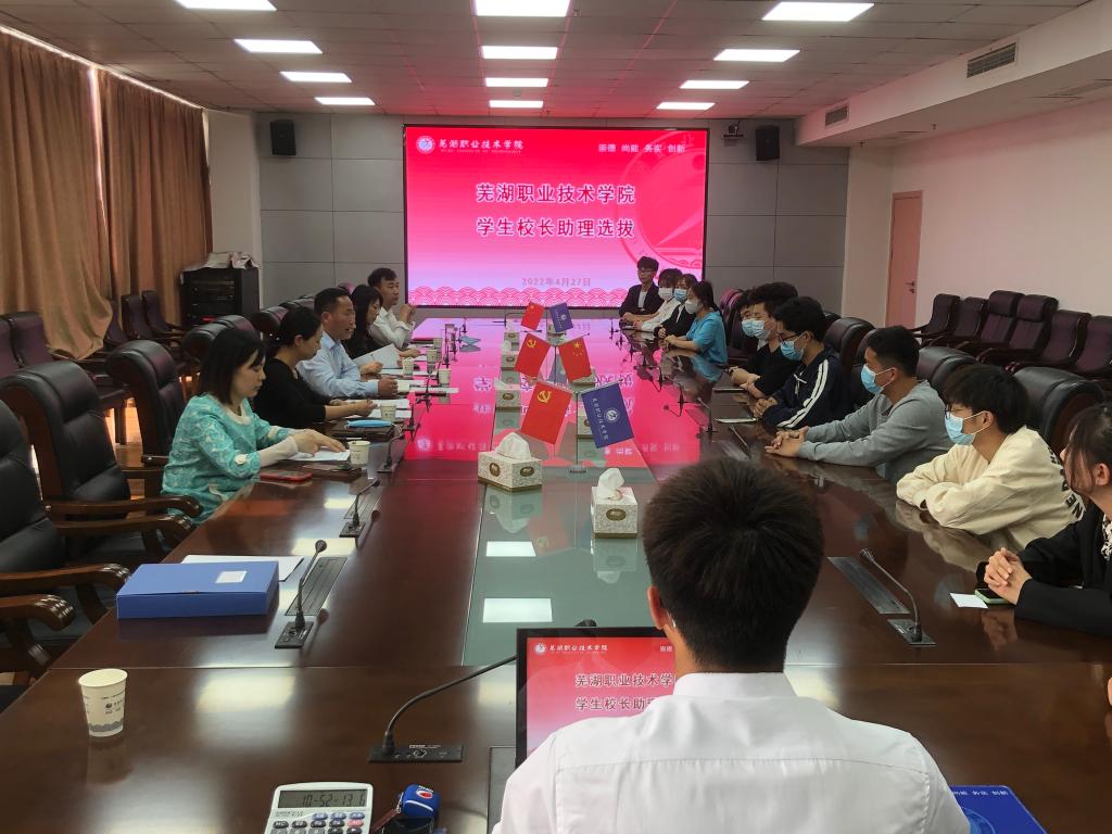 4月27日,我校第五届学生校长助理选聘会在正德楼1112会议室举行。校党委(院长)办公室、学生处、团委相关同志担任此次面试评委。