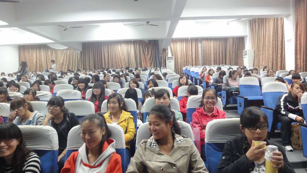 2012年10月29日12点,北校区图书馆一楼报告厅,外语系大一女生听取了第一场讲座。